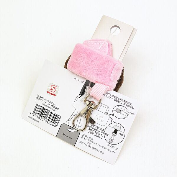 バッグの持ち手に巻き付けてファスナーで固定し取り付けられるモンチッチのバッグキーホルダーです。取り付ける際にバッグの内側にくる金属に鍵などを付けて使用可能◎バッグの中を探さずに見つけやすい便利アイテム♪可愛いモンチッチと一緒にお出かけしませんか♪