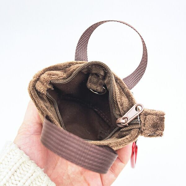 もこもこでふわふわな手触りのミニトートキーケースです。小物入れたり、お家の鍵など入れるのにぴったりなサイズ感◎カナビラ付きだからお気に入りのカバンやリュックなどに付けてお出かけできますよ♪