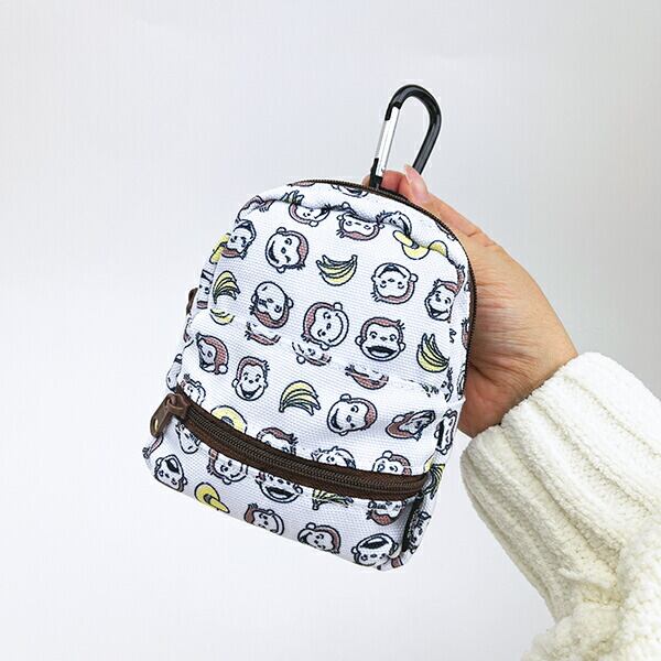 おさるのジョージのリュック型が可愛いらしいミニポーチです。カラビナ付きでリュックやトートバッグに簡単に取り付けられます♪ポケット部分はICカードが入るサイズで使い勝手も◎ぬいぐるみに背負わせてぬい活やぬい撮りにもぴったりです☆彡