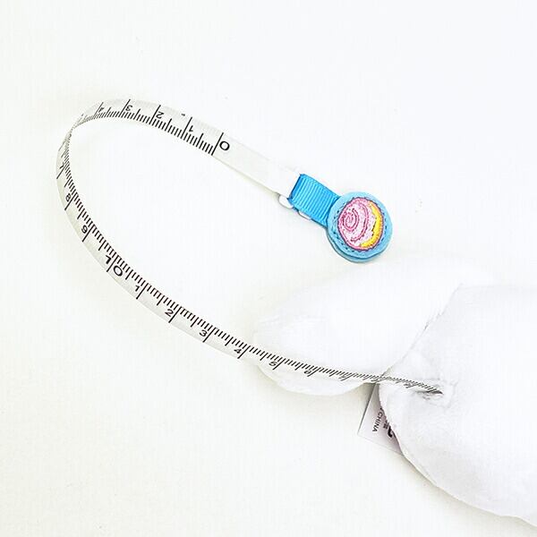 シナモロールのぬいぐるみメジャーです。キティちゃんの愛されフェイスがそのまま♪ぬいぐるみの中心を押すとメジャーが巻き戻ります!1.5mまで測れて、家具や配達物のサイズを測ったり、お裁縫するときに大活躍です☆彡