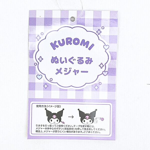 クロミのぬいぐるみメジャーです。キティちゃんの愛されフェイスがそのまま♪ぬいぐるみの中心を押すとメジャーが巻き戻ります!1.5mまで測れて、家具や配達物のサイズを測ったり、お裁縫するときに大活躍です☆彡