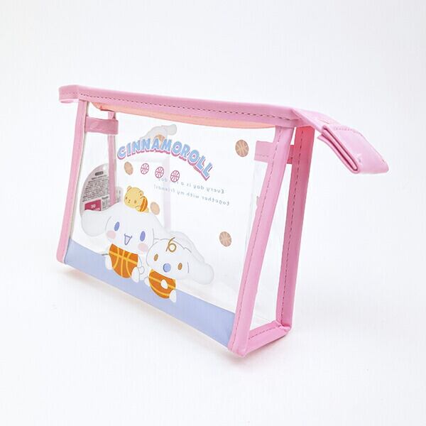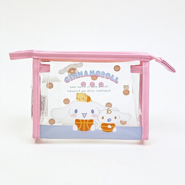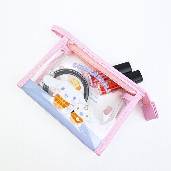 シナモロールの透け感が可愛いクリア素材のポーチです。フチ色がポイント♪メイク用品や小物を入れるのにちょうどいいサイズ感♪透け感があるので中身も確認しやすく、使い勝手も◎ぜひ普段使いにいかがですか?