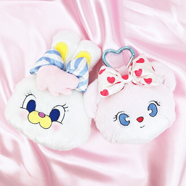 レトロでラブリーな雰囲気が大人気のMOMOREI♪ベストフレンドのうさぎのRicoとくまのPincoがふわふわなマスコットポーチになりました♪バッグやリュックに付けておでかけできるカラビナ付きです!