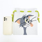 トムとジェリーの本体と紐のバイカラーがトレンド感抜群なニット巾着です。ちょっとクスッと笑えるアートをパステル調のかわいい色合いで編み上げました♪マチもあって収納力抜群です☆メイク用品やモバイルバッテリーなどのガジェットを入れて持ち歩くのに便利なサイズ感が◎お好きなキャラクターで揃えたり、ご家族で揃えても可愛い♪とってもキュートなシリーズなのでぜひ同デザインのマルシェバッグやハートポーチチャームと合わせてお使いください☆彡