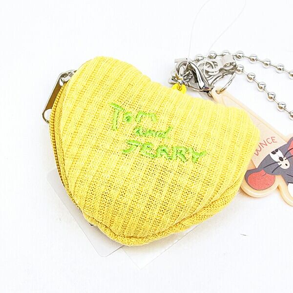 トムとジェリーのニット素材のハートポーチがとってもキュートなハートポーチチャームです。ちょっとクスッと笑えるアートとパステル調のかわいい色合いでギフトなどにもおすすめ♪バッグなどのアクセントにも◎ハートポーチはファスナー付きで小銭入れとしてやアクセサリーなどの小物をサッと収納するのにぴったり☆お好きなキャラクターで揃えたり、ご家族で揃えても可愛い♪とってもキュートなシリーズなのでぜひ同デザインのマルシェバッグや巾着と合わせてお使いください☆彡