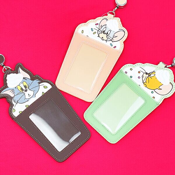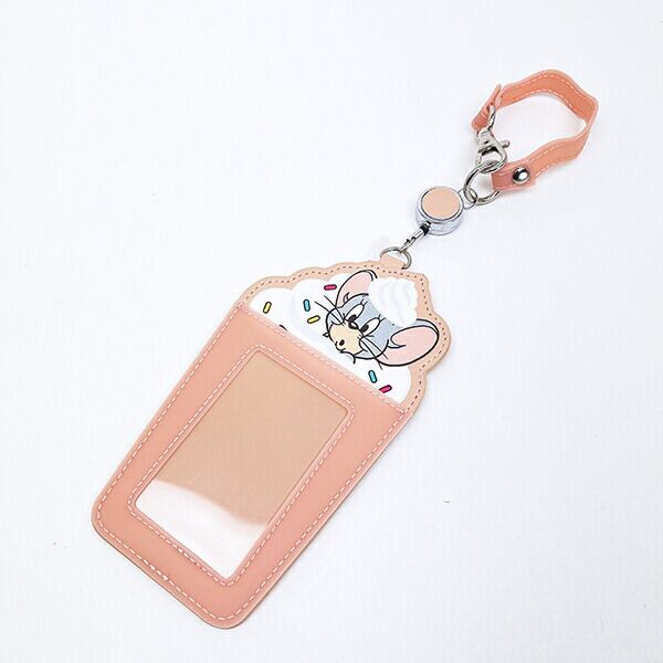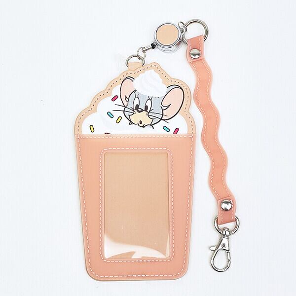 トムとジェリ—のストロベリーのフローズンドリンクをイメージしたカードホルダーです。たっぷりのホイップクリームから顔を出したキャラクターのお顔がとってもキュート♪よく使うICカードを入れパスケースとして使用したり、トレカを入れて推し活アイテムにして使うのもおすすめ◎リール付きなので使い勝手も抜群です☆彡