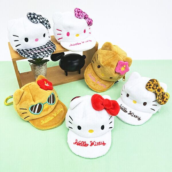 ハローキティの帽子型ポーチです。カラビナ付きなのでバッグなどに付けられます!キャップ型になっていてバッグなどのアクセントにもぴったり☆小銭入れとしても◎サッと出して使いたい小物を入れたりするのに便利です♪