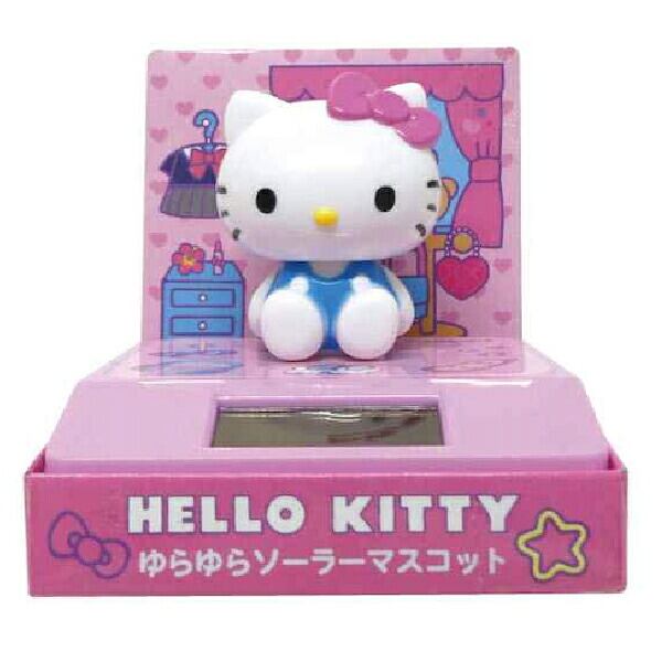 キティちゃんのゆらゆらソーラーマスコットです☆キティちゃんの頭が左右にゆらゆら揺れてインテリアとして、とってもキュート♪台紙を付けたまま飾れば、お部屋みたいになって可愛い☆彡デスクや車のダッシュボードに飾っても◎