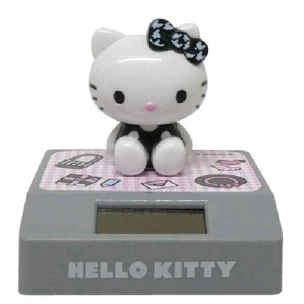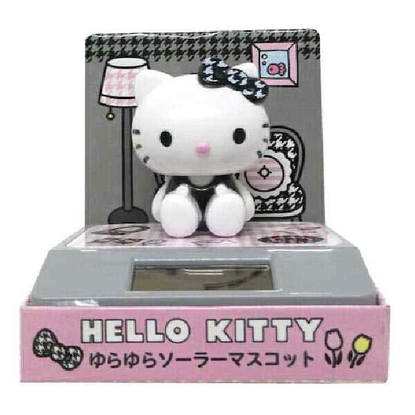 キティちゃんのゆらゆらソーラーマスコットです☆キティちゃんの頭が左右にゆらゆら揺れてインテリアとして、とってもキュート♪台紙を付けたまま飾れば、お部屋みたいになって可愛い☆彡デスクや車のダッシュボードに飾っても◎