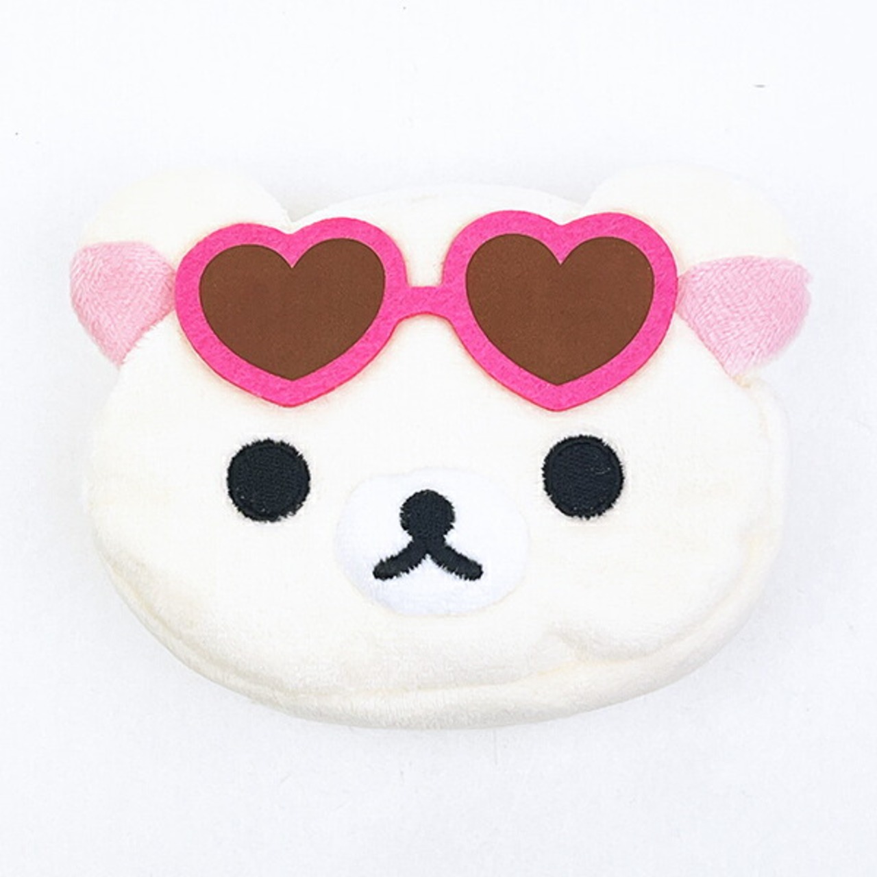 ハートのサングラスがカワイイコリラックマのフェイスポーチです。小物を入れたりちょっとしたコスメを入れても◎もこもこな手触りでついつい触ってしまうぐらいふわふわですよ〜♪同シリーズでリラックマもございますので揃えてみませんか♪