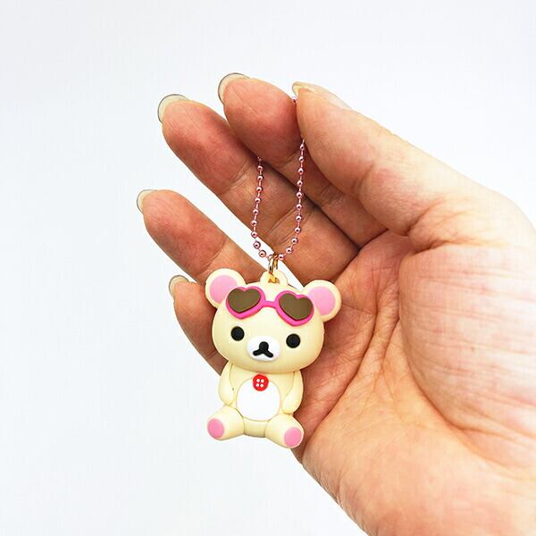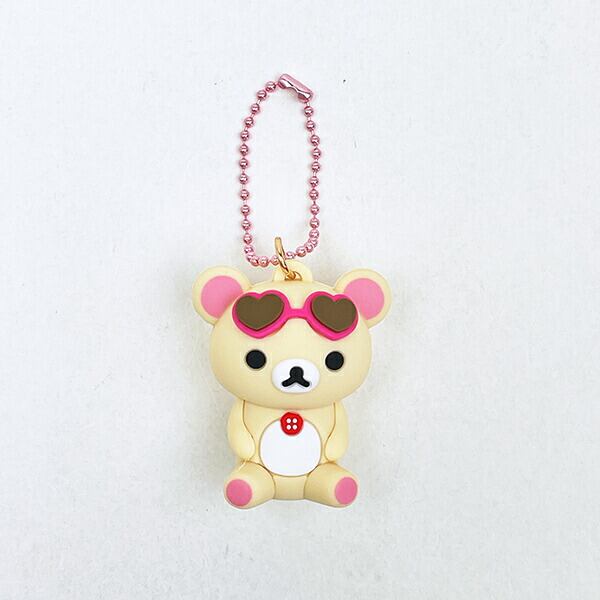ハートのサングラスがカワイイコリラックマのPVCマスコットキーホルダーです。お家の鍵やお気に入りのカバンやリュックに付けて目印にもできる便利アイテム◎夏らしいデザインで可愛く同シリーズでリラックマもございますので揃えたくなる可愛さですよ!ちょこんと座らせてられるのでお家の玄関や車に置いてインテリアとして飾ることもできますよ♪