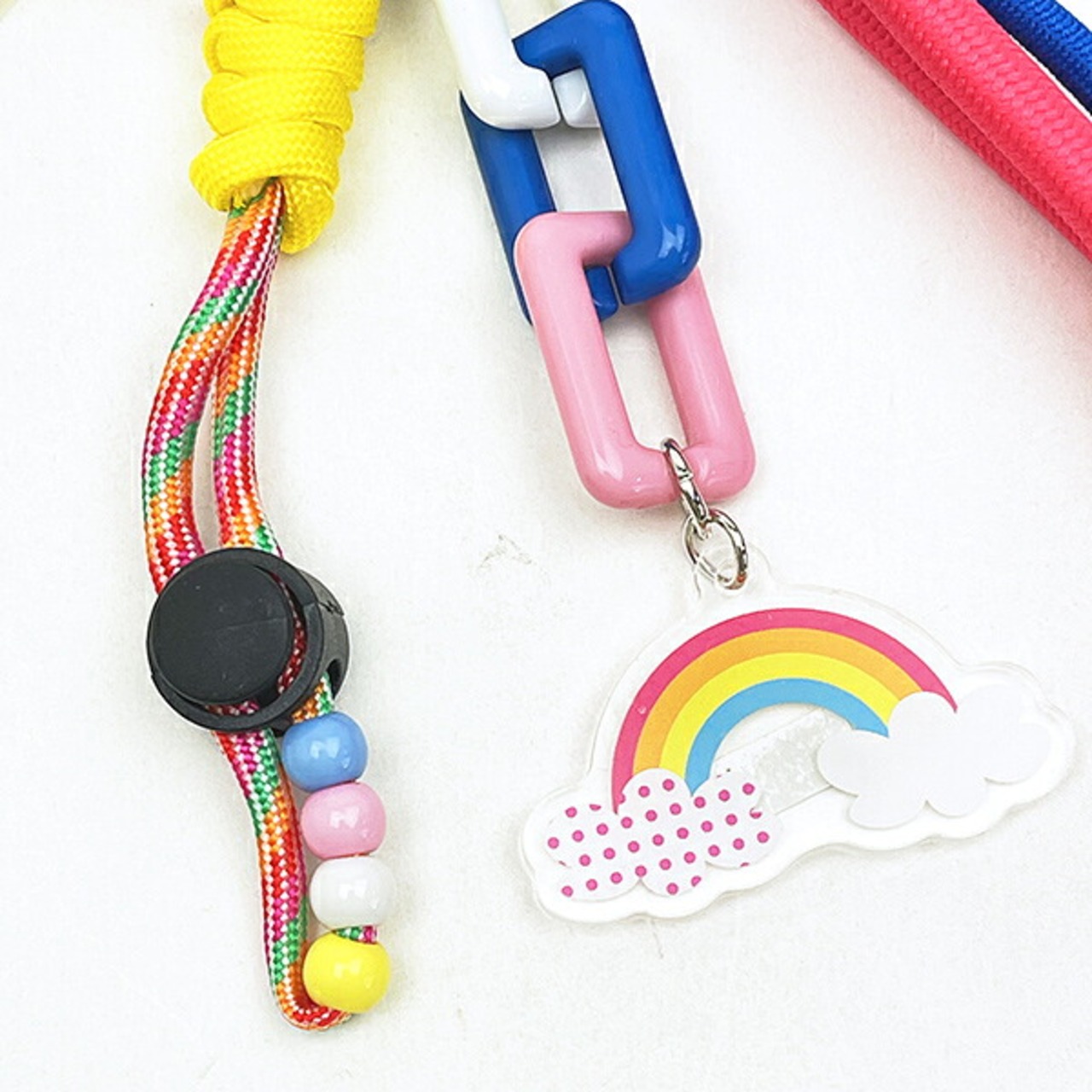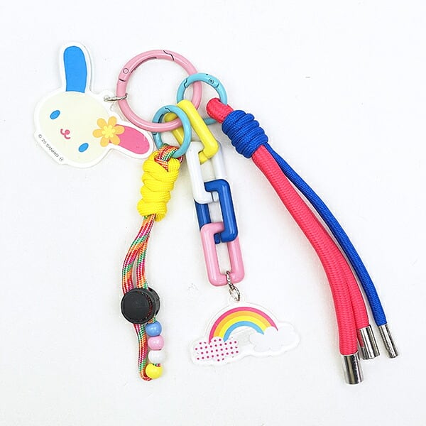 ウサハナのストラップチャームです。カラフルなストラップがたくさんついていてバッグなどのアクセントにぴったり☆ぜひお気に入りのバッグやリュックに付けてお出かけしてみてください♪
