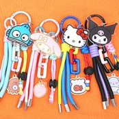 カラフルでたくさんのチャームがカワイイストラップです。丸環で付いているので、一個一個取り外してカスタムもOK!!