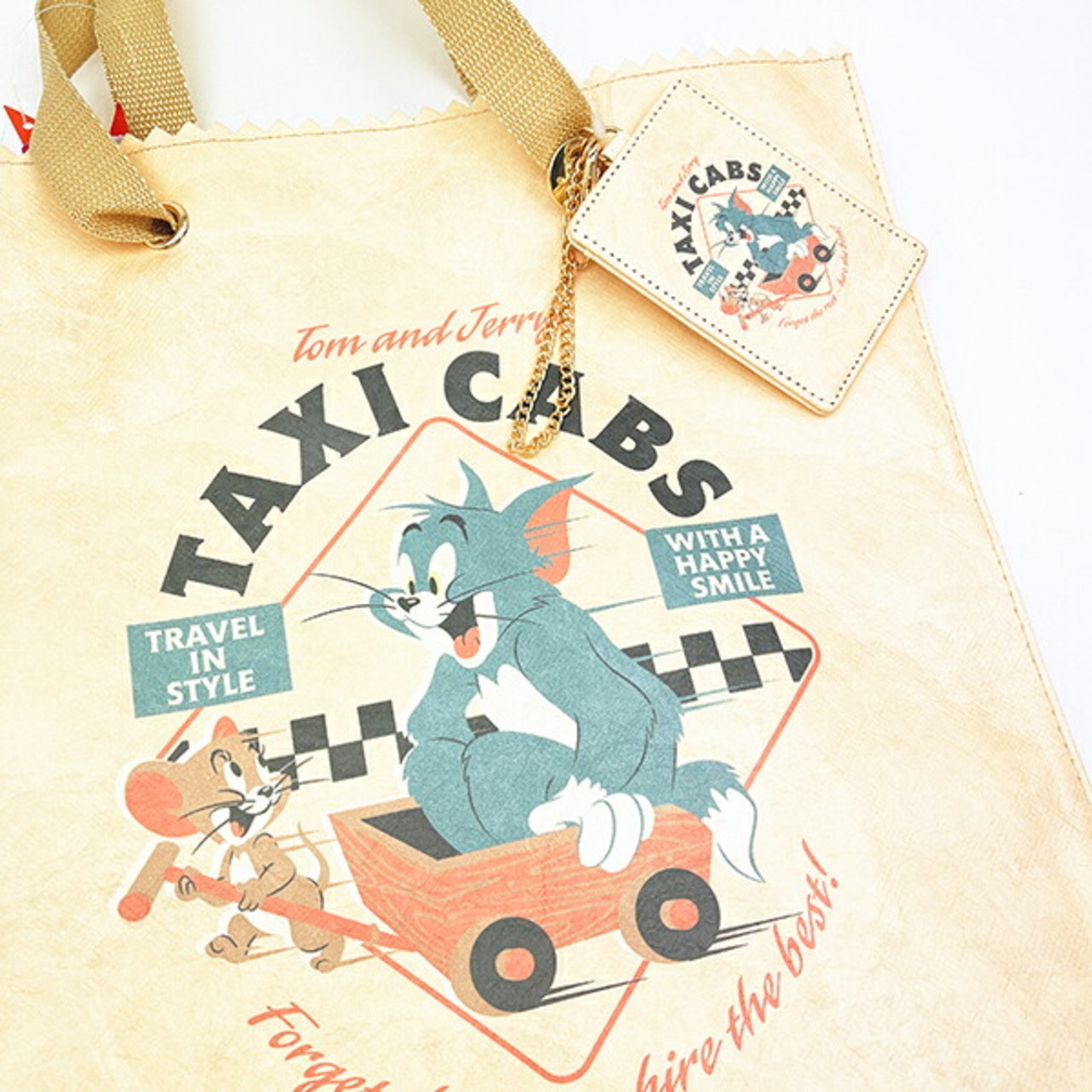 ポスターデザインがおしゃれなパスケースです。バッグに下げられる便利なチェーン付き。トムジェリのレトロなアートを楽しんで♪