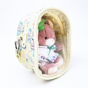 「SWIMMER」と吉徳の「レトロぬいぐるみこれくしょん」がコラボしました!SWIMMER柄のお洋服でおめかししたQピッピと、おそろいのポーチをセットにしたかわいいがギュッと詰まった特別なぬいぐるみです♪【ポーチサイズ:15×10×7cm】