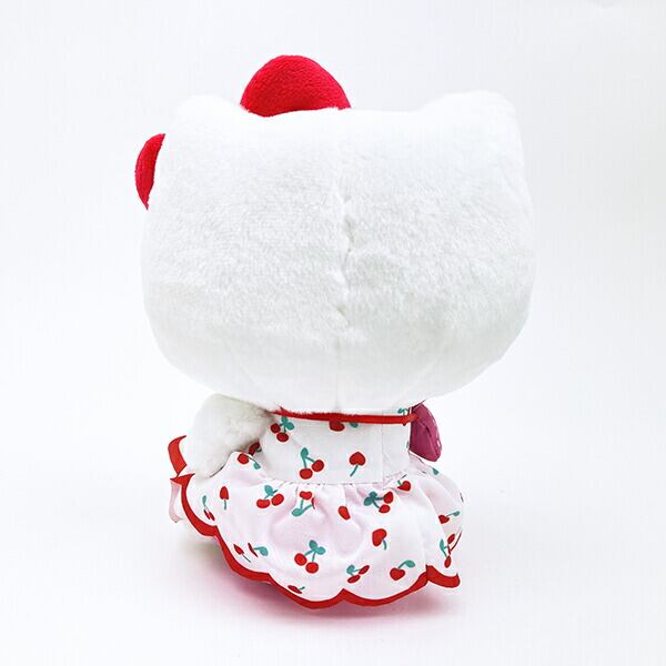 キッズブランド「メゾピアノ」とキティちゃんのコラボぬいぐるみです。こちらはキティちゃん。さくらんぼやいちごのカワイイモチーフが詰まったデザインにメゾピアノちゃんのポシェットを持っているのがポイント♪お尻にビーンズが詰まっているので自分で座ってくれます♪【座高:22?】