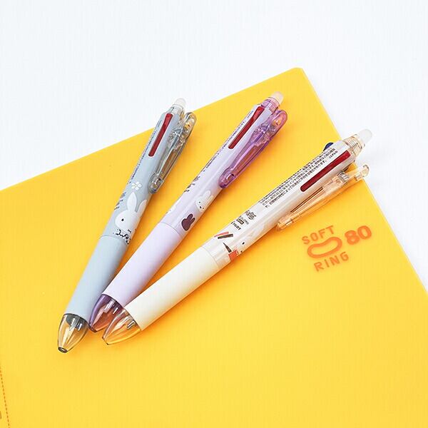 こすると消えるフリクションの3色ボールペン「フリクションボール3スリム」とmiffyがコラボしました!インキ色は黒・赤・青のベーシック な3色。ペン先は0.5mmタイプを採用。 ミッフィーのシンプルなデザインがとってもキュート♪プレゼントにもおすすめです◎