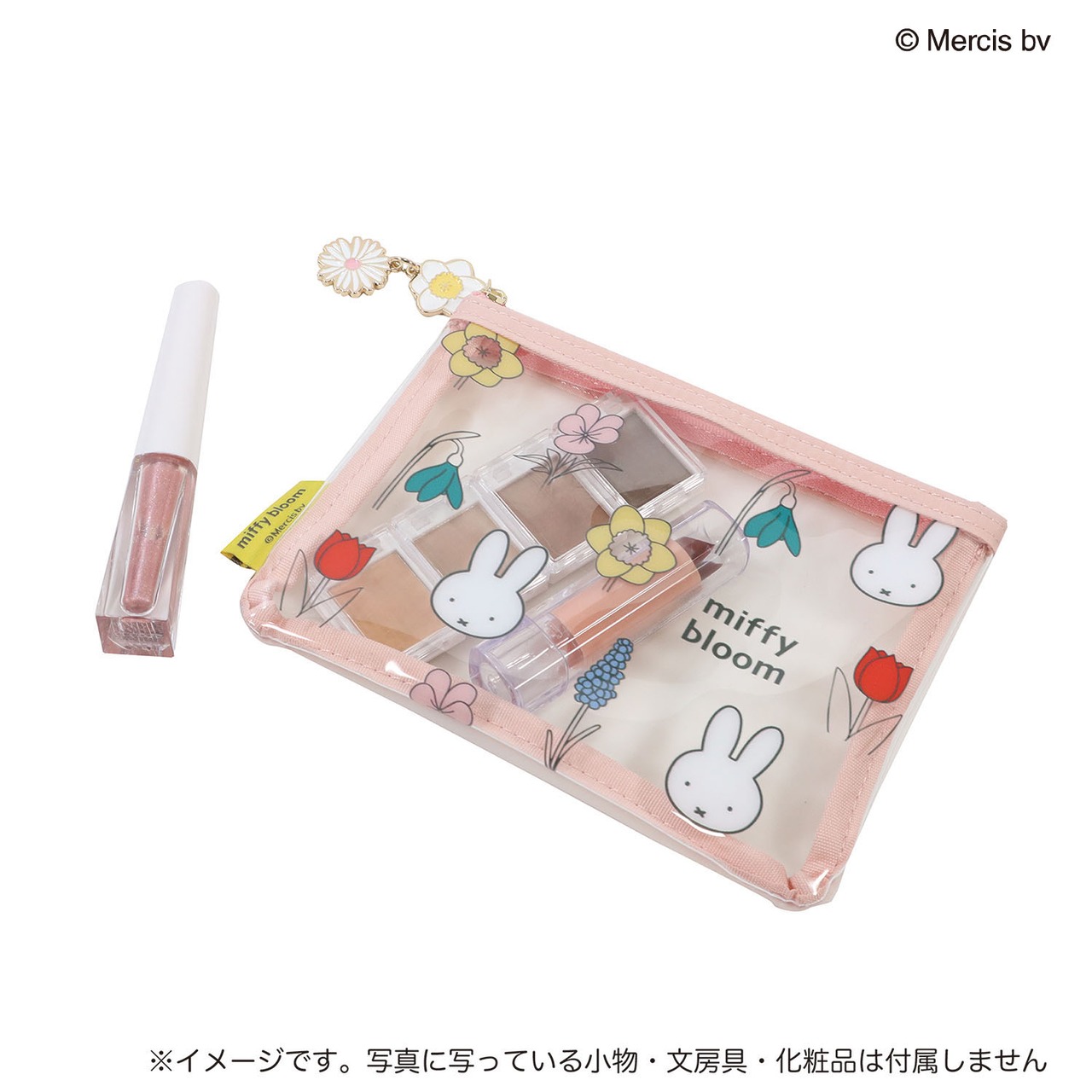 ミッフィーが様々なお花に囲まれた春らしいさわやかなデザインが可愛いポーチです。コスメや小物を入れるのにぴったり!表面は透明PVC、裏面は色付きPVC生地となっていて、見せる収納も可能♪お花型チャームがとってもキュート☆持っているだけでハッピーになっちゃうシリーズ♪♪ぜひ同デザインのシリーズでお好きなアイテムを揃えてみてください☆彡