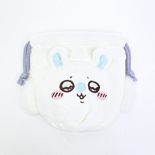ちいかわ(モモンガ)のふわふわ素材のフェイス巾着です。マチ付きなので小物の持ち運びにも便利☆内生地まで可愛いなんてずるい〜!!愛らしい表情がとてもキュートな巾着です♪