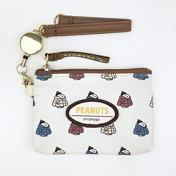 スヌーピーの暖かそうな恰好の姿が可愛いポケット付きパスケースです。ポケット付きなので定期やICカードと一緒に小銭などを入れて一緒に持ち運べて便利♪伸びるリール付が嬉しいポイント☆バッグなどに付ければアクセントになること間違いなし!いつもと違うスヌーピーが楽しめます♪