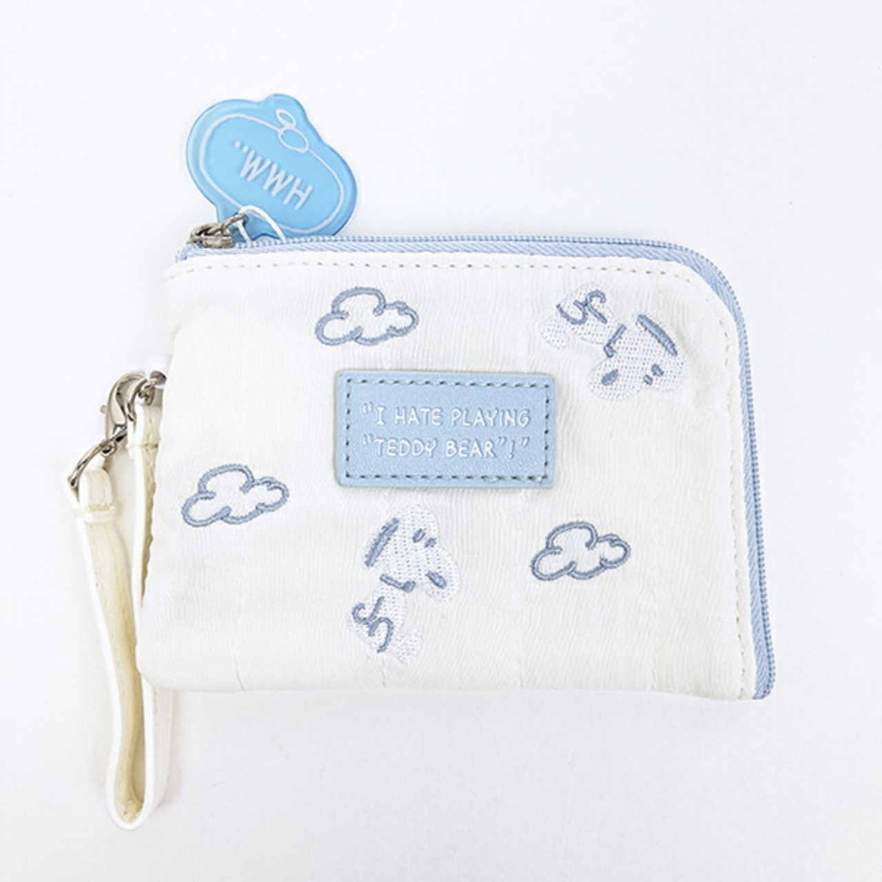 柔らかい手触りのキルティング生地&スヌーピーの刺繍がポイントのパスケース。伸びるリールもとっても便利◎