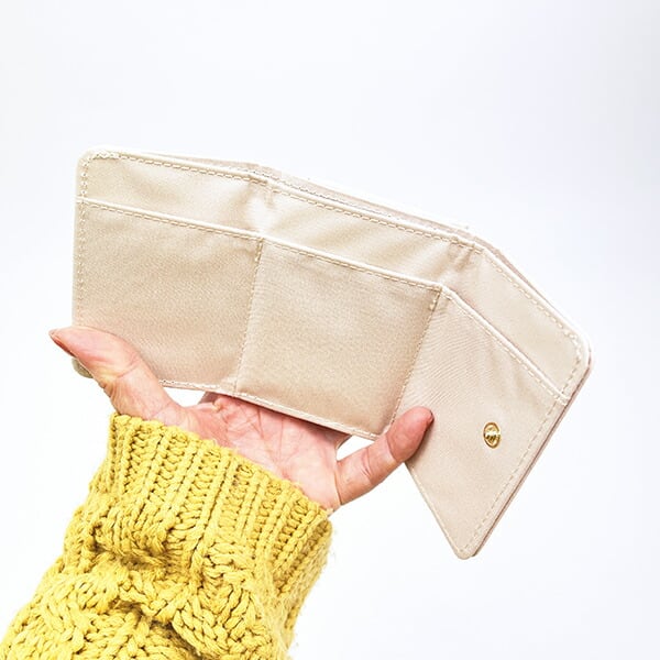 ミッフィーのコンパクトで使い勝手◎な三つ折りのお財布です。小銭入れががま口タイプで広々としており、小銭も出し入れしやすくてgood☆優しい色合いなので使う人を選びません♪コンパクトなのでバッグのスペースも気になりにくいです☆彡