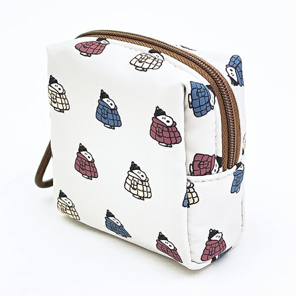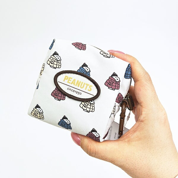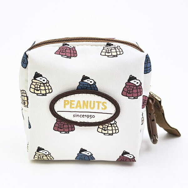 スヌーピーの暖かそうな恰好の姿が可愛いカラビナ付きミニポーチです。イヤホンやリップなどの小さい小物を入れるのにぴったり☆バッグなどに付ければアクセントになること間違いなし!いつもと違うスヌーピーが楽しめます♪
