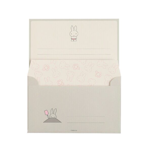 ミッフィーの生活に取り入れやすいカラーで大人っぽく使っていただけるシリーズのレターセットです。封筒の中にもミッフィーのパターン柄が印刷されていて、開封した際に楽しめます♪優しいカラーで生活に寄り添ってくれるレターセットです♪とっても可愛いシリーズなのでぜひ同シリーズの文具アイテムで揃えてみてください☆彡【内容:付箋6枚、封筒3枚】