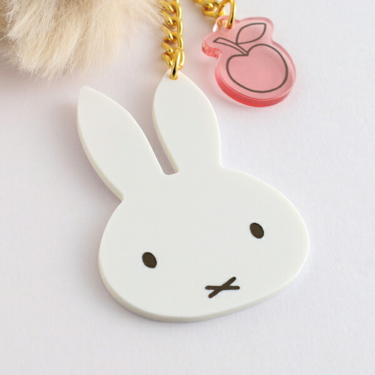 ミッフィー miffy ファー付きアクリルキーホルダー ベージュ