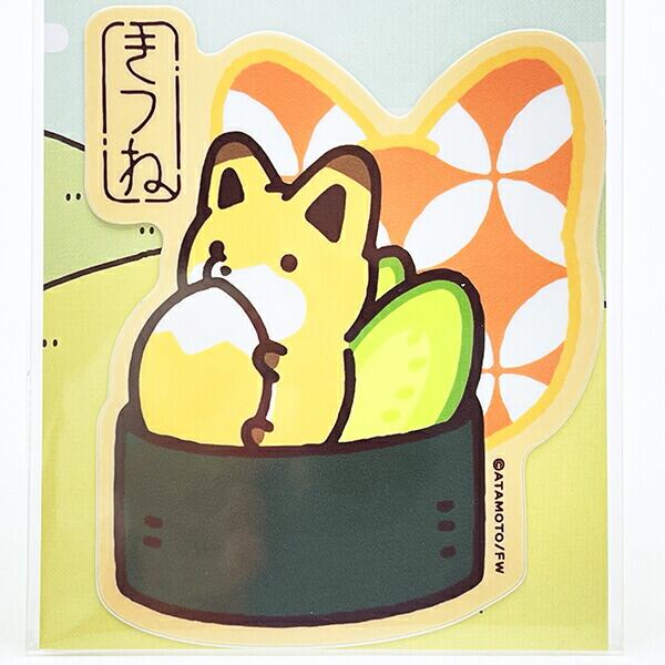 タヌキとキツネ 軍艦巻きキツネ ダイカットビニールステッカー 日本製