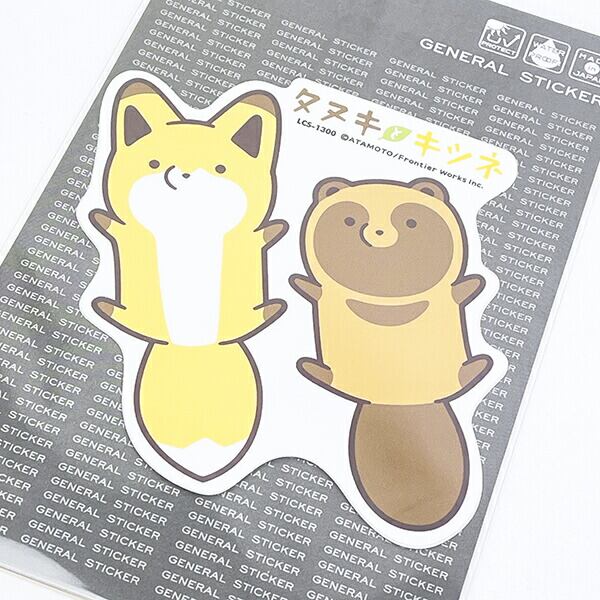 タヌキとキツネ 仰向け ダイカットステッカー 日本製