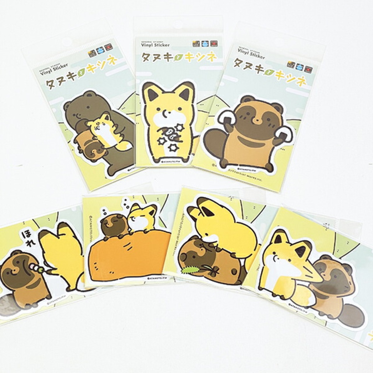 SNSで人気のコミック「タヌキとキツネ」ダイカットビニールステッカーです。ちょっぴりぬけてるタヌキと、ちょっぴりいじわるなキツネ。そんな仲良し2匹がとっても可愛いステッカーになりました!シートタイプのステッカーはミニステッカーがついてお得!お山に暮らすなかまたちもどこかにいるかも!?見ているだけで癒されるタヌキツグッズでこころもほっこり♪こちらの商品は耐水、耐光性のあるステッカーです。屋外はもちろん、スマホ、PC、タブレット、スーツケースノートや手帳など様々なところに貼ってお楽しみ下さい♪