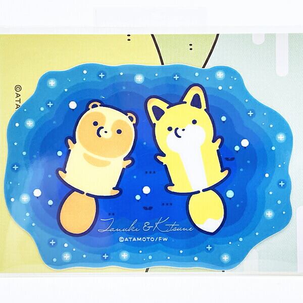 タヌキとキツネ ごろ寝 クリアステッカー 日本製