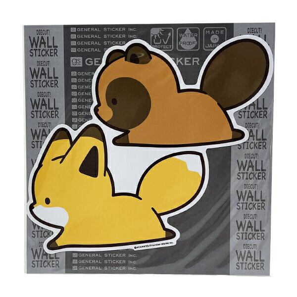 タヌキとキツネ お散歩 ビッグウォールステッカー 日本製