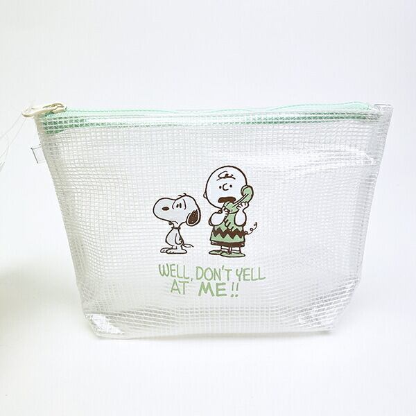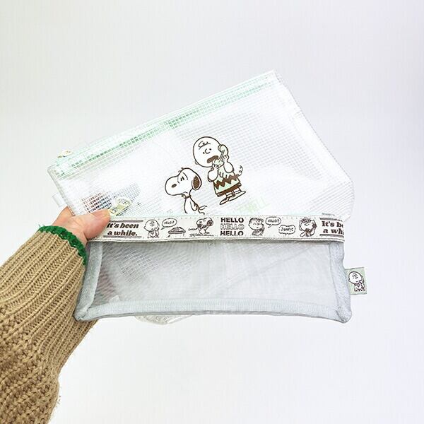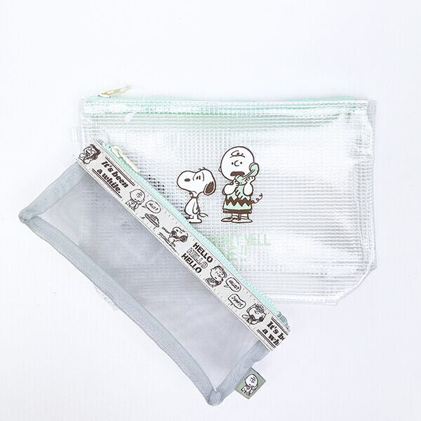 旅行で大活躍間違いなしのポーチ2個セットです。ミニサイズはメッシュ素材で通気性バツグン◎大きいサイズも濡れてもサッと拭けて衛生的◎ちょっと困ったお顔のスヌーピー達がとってもキュートなデザインです♪◆サイズ:約230x160x60mm(M)、約200x80mm(S)