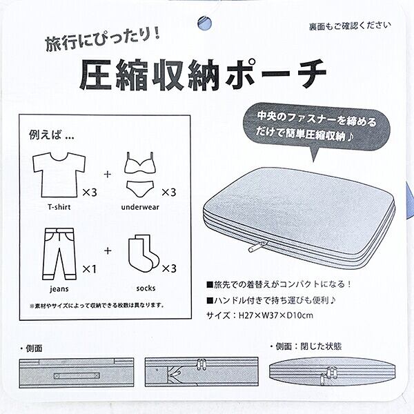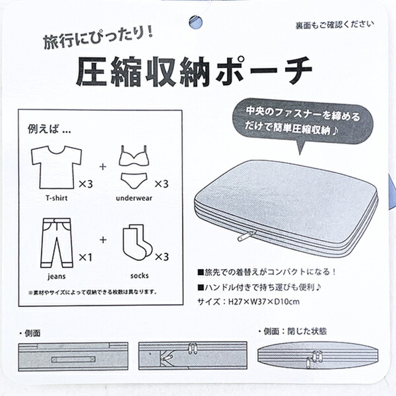 旅行のピッキングにぴったりな圧縮トラベルポーチです。小さいお子様の洋服や大人の服をコンパクトにまとめられる便利アイテム◎中央のファスナーを締めるだけで簡単に圧縮収納♪ハンドル付きで持ち運びも便利♪スヌーピーと一緒に楽しく旅行を楽しみましょう♪