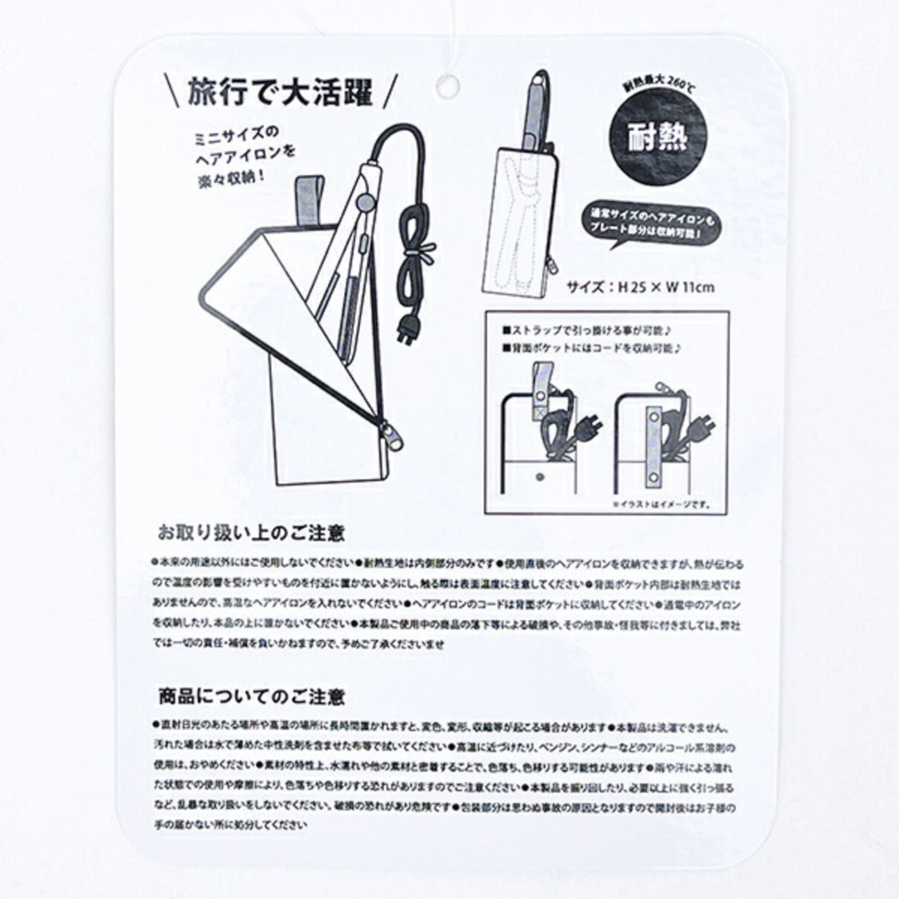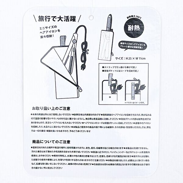ヘアアイロンの余熱があってもサッと収納できる耐熱トラベルポーチSサイズです。背面ポケットにはヘアアイロンなどのコードが収納できて便利◎スヌーピーのシンプルなデザインもかわいいですね♪