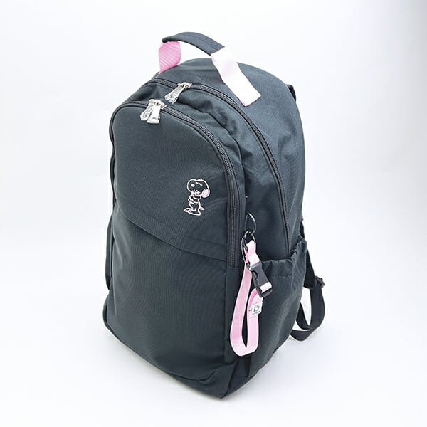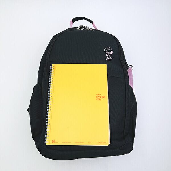 スヌーピーのA4サイズの書類やタブレットもしっかり収まる大容量のスクールリュックサックです。両手が空いてラクラク持ち運べるジャケットホルダー付きがgood☆ジャケットの他にもキャップやタオルを引っ掛けられるのでスポーツをする方にもおすすめ!通勤や通学など荷物も持ち歩く方にぴったり♪ピンクのアクセントがポイントなのでどんなコーディネートにも合わせやすく使い勝手◎軽量で水や汚れに強く、お手入れが簡単なので、毎日の使用でも安心して長くお使いいただけます♪♪