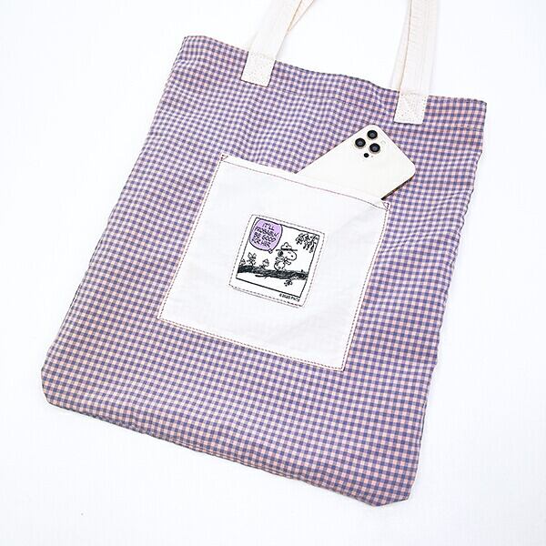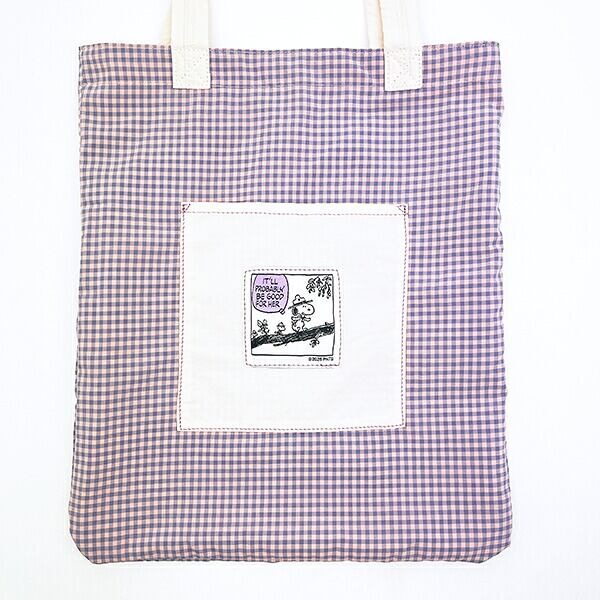スヌーピー チェックリバーシブルトートバッグ アイボリー SNOOPY