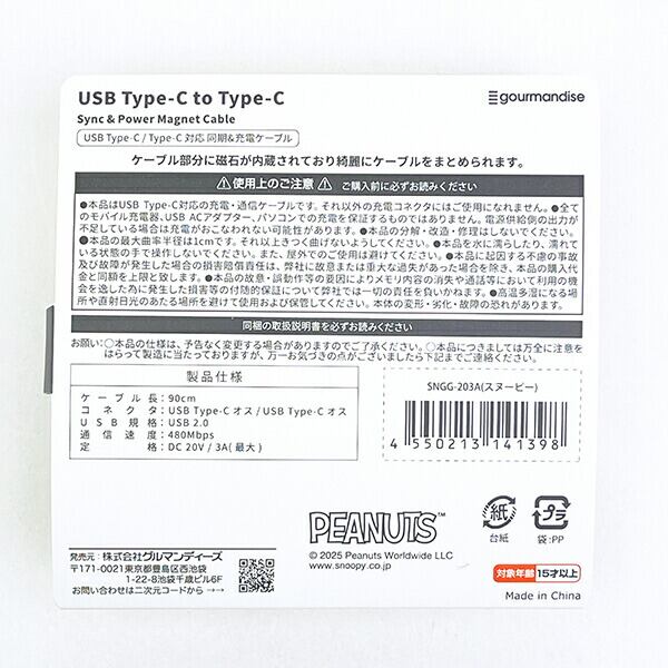 スヌーピー マスコットマグネットケーブル (Type-C to Type-C) スマホ用品 SNOOPY
