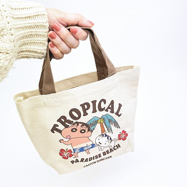 デイリーユーズに便利な大きさのミニトートです。日焼けしたしんちゃんがカワイイデザイン♪ランチバッグとしても◎
