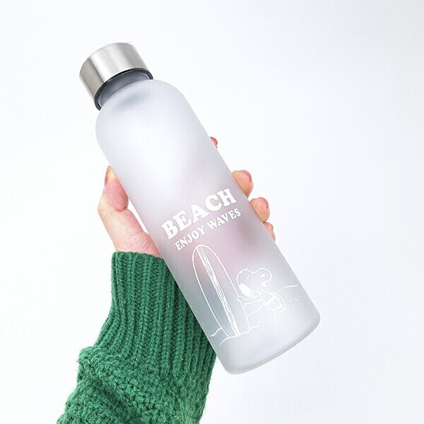 スヌーピーのウォーターボトルです。目盛りに可愛いイラストが・・!スヌーピー好きにはたまらない♪♪ぜひサーフィンを楽しむスヌーピーと一緒に楽しいランチタイムをお過ごしください☆【容量:500ml】