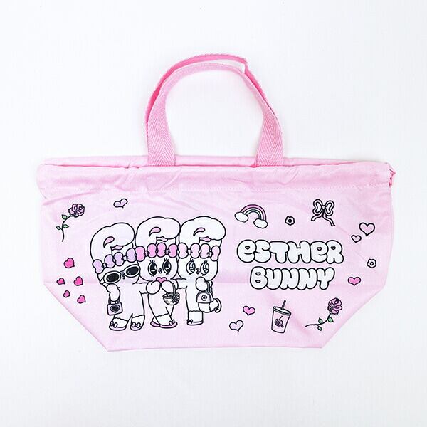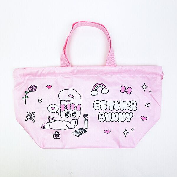 エスターバニーのランチ巾着です。持ち手付きなので持ち運びも便利☆しわになりにくいのが嬉しいポイント♪エスターバニーのランアイテムで揃えればランチタイムも楽しくなること間違いなしです☆彡