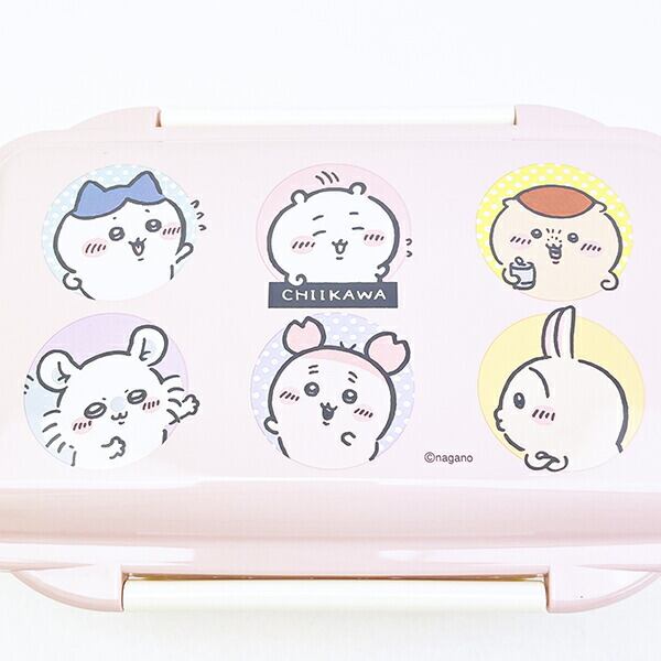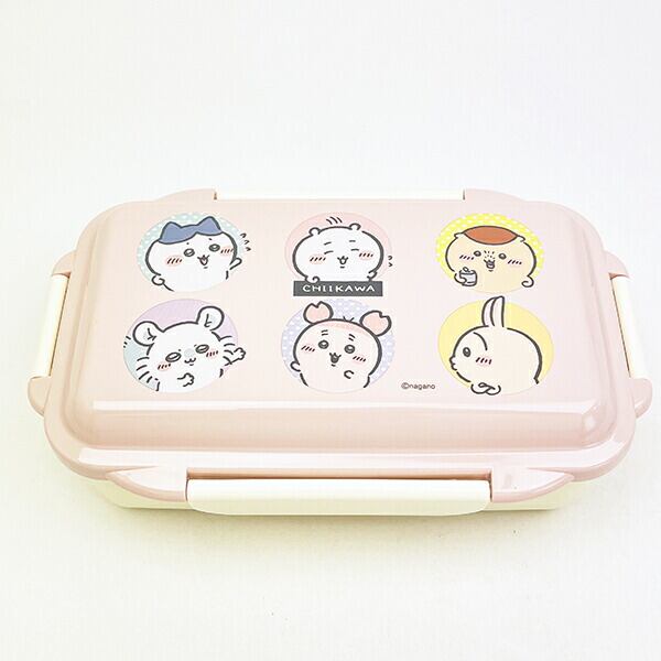 優しいピンク色が可愛いちいかわの4点ロックランチボックスです。高い仕切りでおかずも片寄らず、4点ロックでがっつりロックして汁もれしにくいのが嬉しいポイント☆箸セットとお揃いデザインで揃えたくなる可愛さ??ちいかわの仲間たちが大集合しているのでちいかわ好きにはたまらない〜♪ぜひちいかわたちと楽しいランチタイムをお過ごしください☆食洗機・フタを外して電子レンジ使用可◎【容量:500ml】