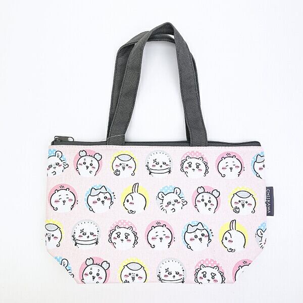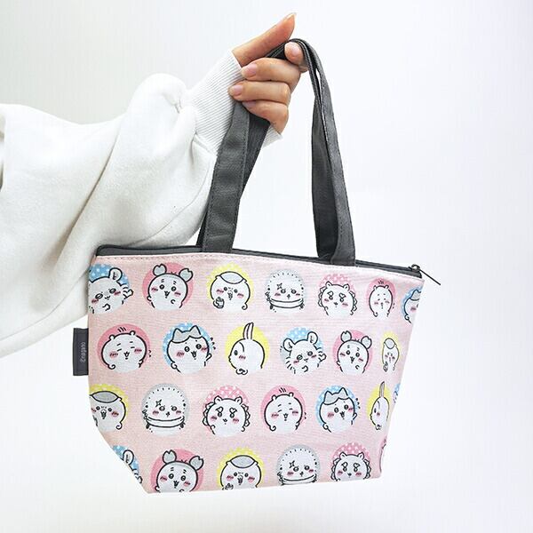優しいピンク色が可愛いちいかわのランチバッグです。内側は保冷効果のあるアルミ蒸着素材!ちいかわの仲間たちが大集合しているのでちいかわ好きにはたまらない〜♪ぜひちいかわたちと楽しいランチタイムをお過ごしください☆