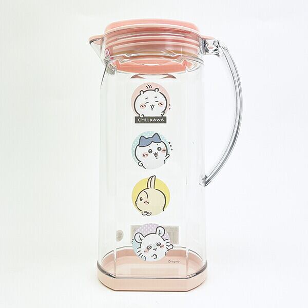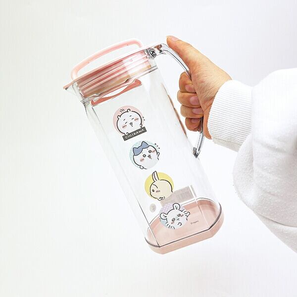優しいピンク色が可愛いちいかわの冷水筒です。容量1.2Lのタテ、ヨコに置けるので使い勝手◎ちいかわの仲間たちが大集合しているのでちいかわ好きにはたまらない〜♪お茶などの作り置きにぴったり☆スポーツをしている方はスポドリを作って持ち運ぶのもおすすめです☆彡