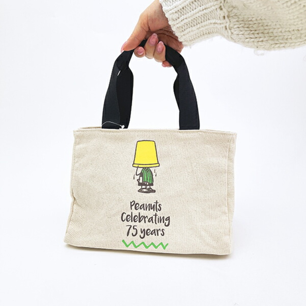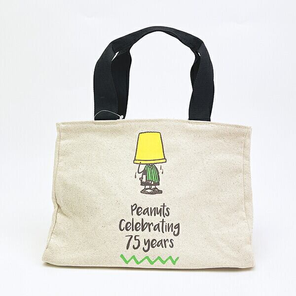 スヌーピー サイドボタンミニトートバッグ ナチュラル ロゴ ランチ PEANUTS 75th SNOOPY