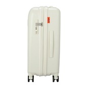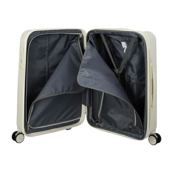 スーツケースのボディ前面にはナインチェがエンボスデザインされています。ボディ背面にはお花のプレートが埋め込まれており、側面にはmiffy 70thのタグがついています。デザインだけでなく、実用性も抜群。こちらのMサイズは荷物やお土産が増えても安心の『容量拡張』機能搭載。拡張ファスナーを広げると容量が約5Lアップします。ボディには剛性・耐衝撃性がある『ABS樹脂』に、飛行機の窓などにも使われる頑強・軽量素材の『ポリカーボネート』を加えた混合素材を採用。キャスターはダブルキャスターなので凹凸の多い路面でも安定した走行が可能。更に衝撃吸収サスペンションキャスターなので振動が手に伝わりにくく疲れにくい。ロックはシフレロックシステム(シフレ独自開発の2way式ロックシステム。カギでも番号でもどちらでも開閉が可能)を採用。さらに、アメリカ方面への旅行時、鍵をかけたまま航空会社に荷物を預けることが可能なTSロックも搭載。内装フタ側の間仕切りはファスナーで閉じられるので、開閉時に荷物がこぼれず便利。胴側はバックル留めの間仕切りとクロスベルト仕様なのでお荷物の荷崩れを防止することができます。【拡張時外寸:H63×W42×D32cm】【内寸:H57×W38×D26-31cm(拡張時)】【重量:約3.8kg】【容量:約55-60L】【宿泊目安:約3〜5泊】