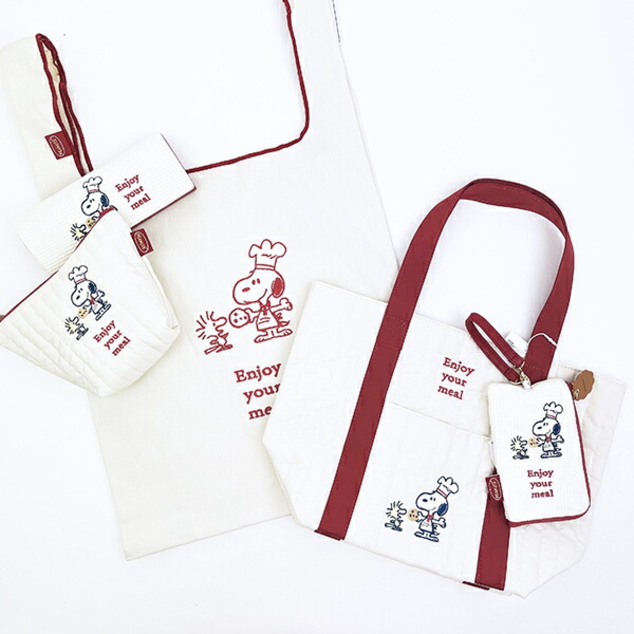 スヌーピーのメガネケースです♪シェフスヌーピーの刺しゅうがとってもキュート♪同色のクロスも付いていて、大人女子にピッタリ♪同シリーズでバッグやポーチもあるので、揃えたくなっちゃう☆彡