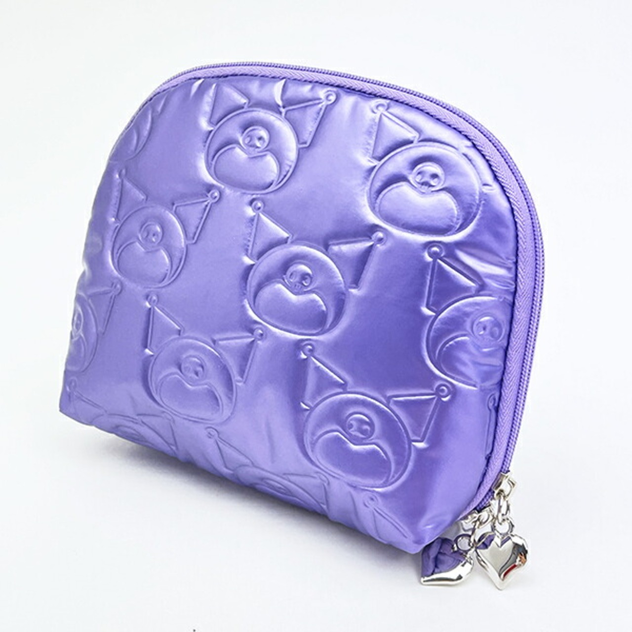 高級感のあるメタリック生地のラウンドポーチです。ツヤツヤのメタリック生地にはキャラクターの顔をエンボス加工でデザインでぷっくり感◎キャラクターのお顔の形がぷっくり浮き出ていて可愛く、毎日の持ち歩きに便利◎ちょっとしたコスメ入れや小物を入れるのにぴったり♪ファスナーの引き手はハート形で口はがばっと開くので簡単に収納できる◎同シリーズでポーチやパスケースやトートバッグもございますので揃えてみませんか♪